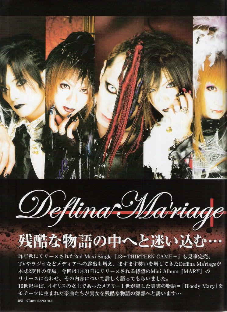 O: Deflina me encanta, tienen muy poco ya que no se si aun estan juntos o no pero son simplemente geniales, para los amantes de los grupos key party, ya que contiene a el vocalista(asesinenme si me equivoco) de Aliene Ma'rriege y Chaos+sistem Kyouka, el ex deflower o noir fleurir tomo guitarrista y el bajista de missalina rei aya grupos kei party buenisimos aunque segun las malas lenguas el mejor es la'mule :X yo no he dicho nada xDD